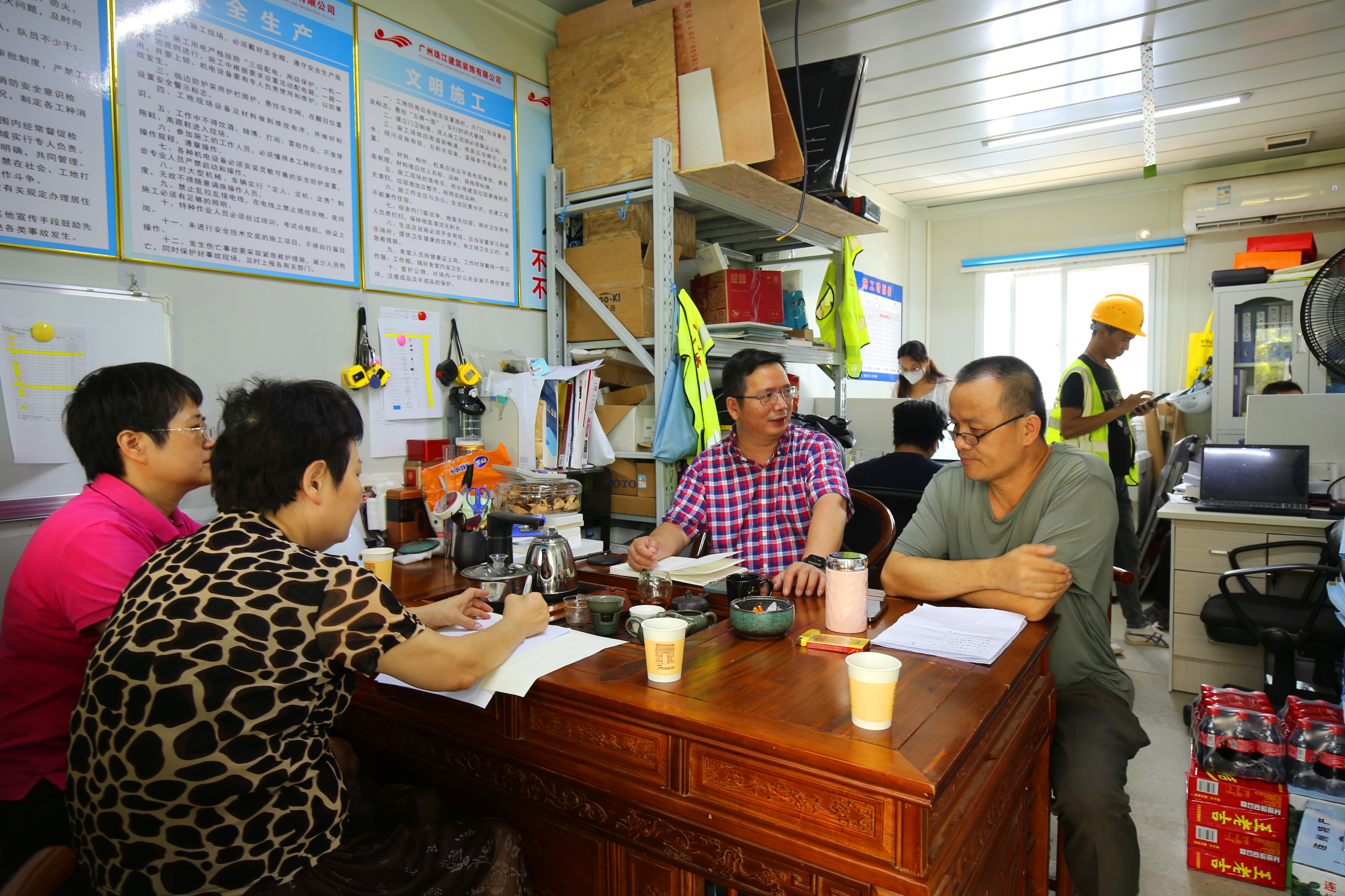 近日持续高温天气,为关爱在高温作业下的一线施工人员。714日上午,公司工会、党支部领导一行到海灏生物科技总部科学园工地开展“抗高温 送清凉”慰问活动。